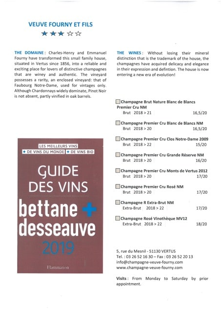 - 17/20 – Champagne Premier Cru Monts de Vertus 2012, Brut